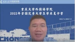 紧接着,各位优秀老师们为营员呈现了来自英语文学、英语语言学、英语翻译和日语语言文学四个方面的讲座。首先,李永毅教授为营员们带来的主题为“英语诗歌阅读的方法”,康鑫副教授呈现了题为“Language Evolution, Learning, & Processing: From genetics to behaviors”。在下午,辜向东教授为大家讲述了“学术文献阅读、分析与综述撰写”。接着,李玲副教授从如何学好文学、如何做科研以及文学的复杂性三方面进行了讲解。在第二天的夏令营里,穆雷教授讲述了翻译的职业化与翻译硕士专业学位的发展。晏生宏副教授就关于翻译(翻硕)的几个问题进行了阐释。陈爱华副教授介绍了日语硕士研究生培养情况并展示了战争时期日本的《西游记》热研究。