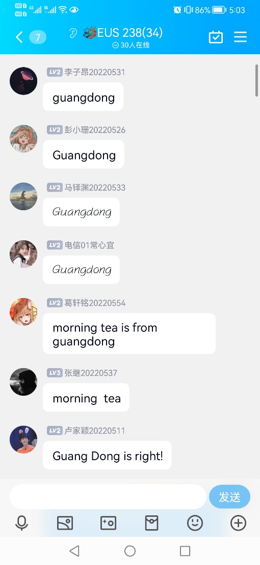 宣传片,帮助新同学直观了解学校的校情校貌,在云端初步熟悉学校整体情况。课程开始,老师们设计了各类线上破冰小活动。如杨郁梅老师请大家根据同学在头脑风暴活动中的描述,猜猜他/她从哪里来。五湖四海都是中华儿女,大家在破冰之后快速融入学习。黄莉荔老师运用语料库资源设计了词汇练习,促使同学们有意识利用技术积累词汇。