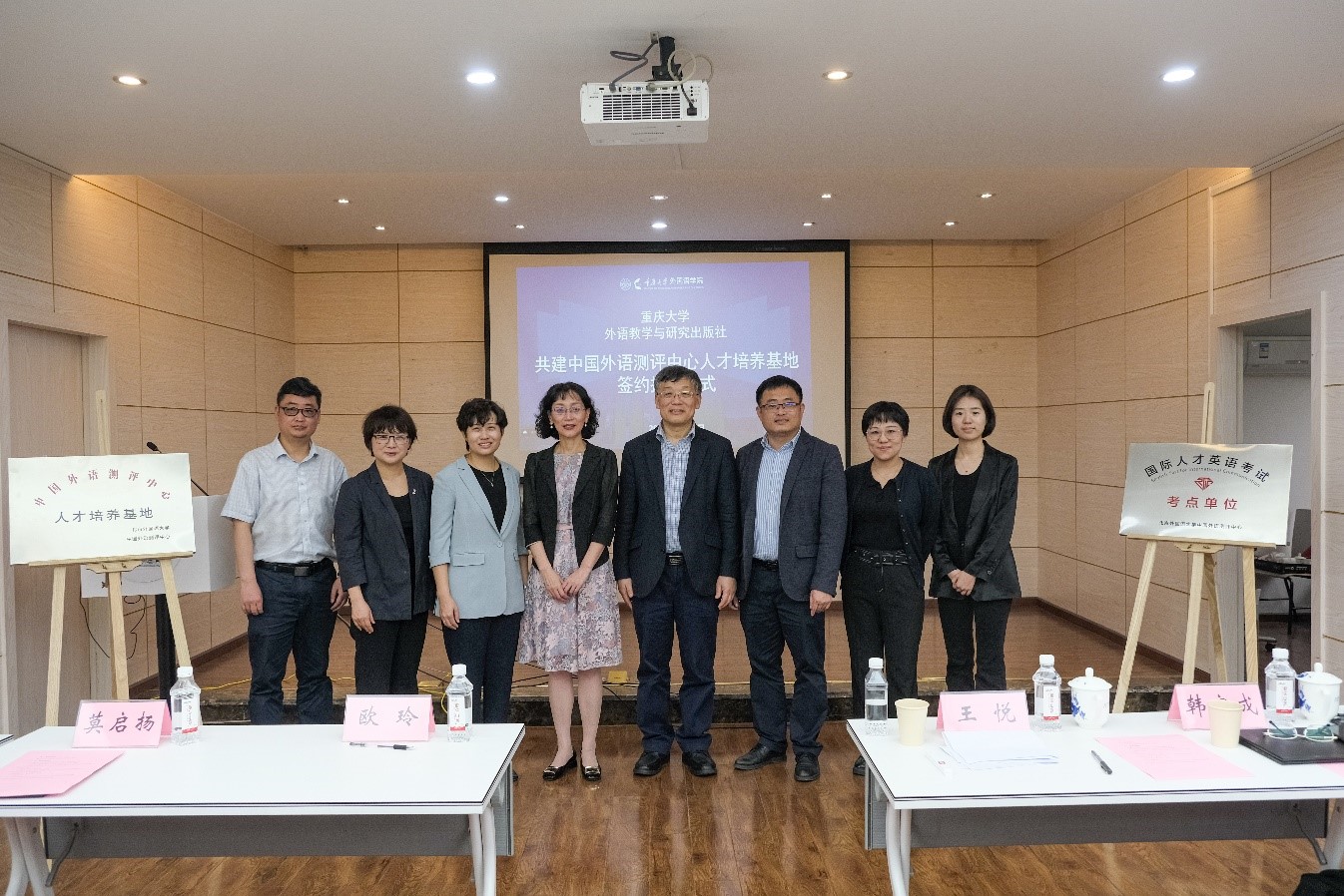 的情况,强调学院始终以“立德树人”为外语教育的根本任务,致力于高水平外语人才培养与学科发展,支撑学校的“双一流”建设。此次校企合作,对于提升大学生外语能力、推进校园国际化建设等具有重要意义,学院将以此为契机,加强与中国外语测评中心及外研社的合作交流,实现合作共赢。