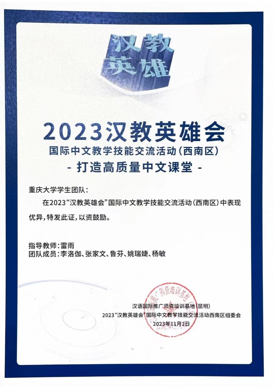 2023年6月至12月,由全国国际中文教育专业学位研究生教育指导委员会、教育部中外语言交流合作中心联合举办了2023“汉教英雄会”国际中文教学技能交流活动。我院由指导老师雷雨和汉硕5名中外学生组成的色情影片