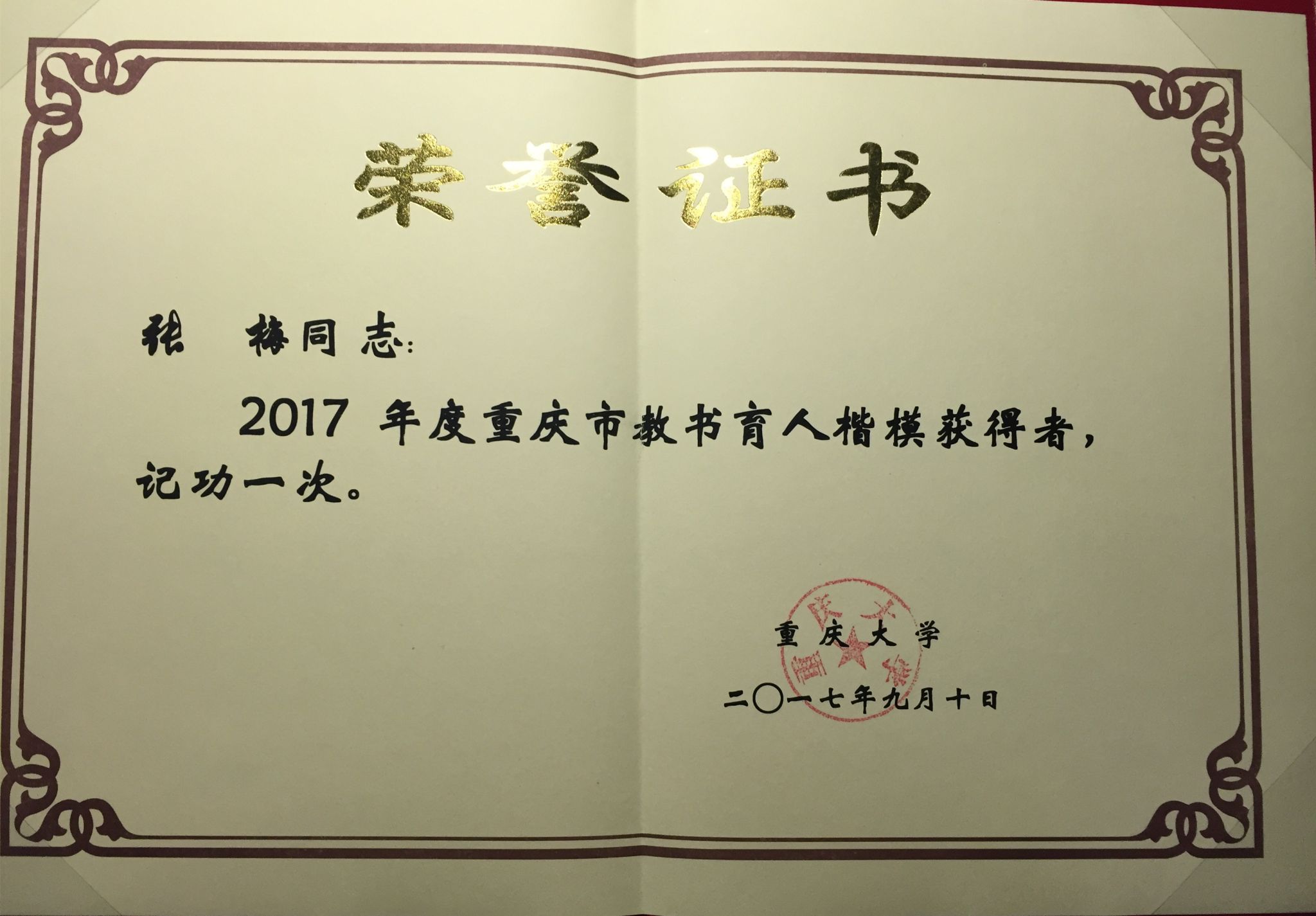 教学工作优秀教师、国家级教学成果二等奖、重庆市教学成果三等奖、色情影片