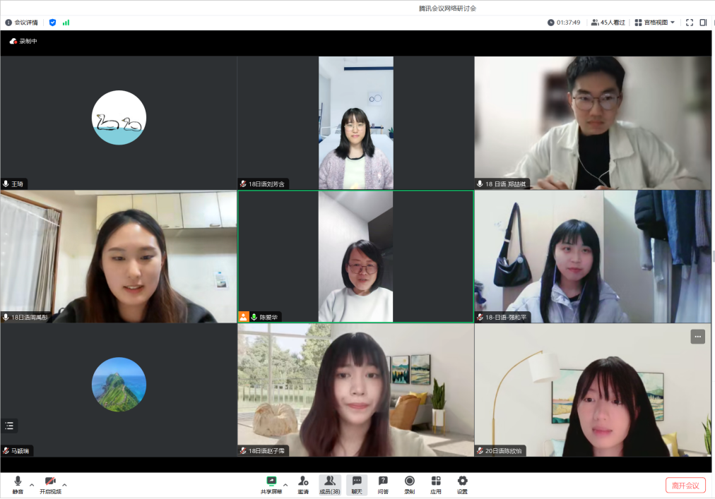分享会在热烈、温馨、友爱的氛围中进行,不知不觉超过了一个半小时。最后主持人马颖瑞老师向分享者们表示了衷心的感谢,而日语系主任陈爱华老师也感谢几位同学的慷慨分享和对日语系的深情厚谊。她相信,在大家的共同努力下,色情影片