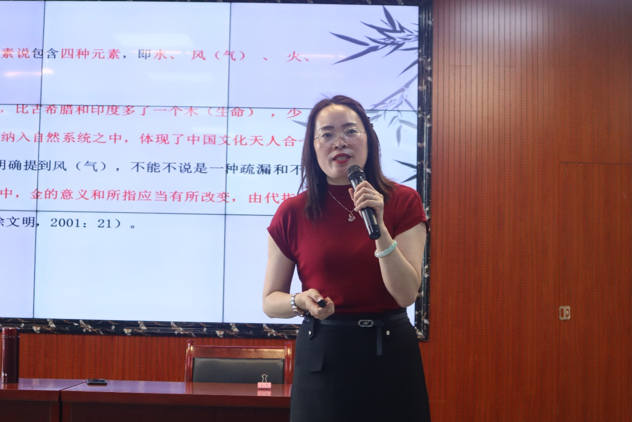 李孝英以中国传统文化瑰宝—中医为切入点,深入浅出地阐述了翻译工作的跨学科特性。她强调,翻译不仅仅是语言文字的转换,更是历史与文化的传承与弘扬。在讲座中,李孝英以中国五行(金木水火土)的历史演变为例,详细讲解了“金”行在医学界和翻译界的误解并给予现实客观的论证,提出了独特见地,凸显了翻译工作的深度与魅力。这种独到的理解与翻译不仅准确传达了原文的含义,更让听众领略到了中国传统文化的博大精深。