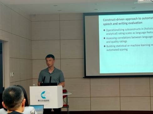 而后,陆小飞教授又阐释了基于大语言模型的自动化写作评分研究。随着大语言模型的广泛应用,陆小飞教授指出,最新研究也开始通过提示词工程或微调,将其应用于口语与写作测评。陆小飞教授还介绍了其团队近年来在基于语言特征与大语言模型的口语与写作测评领域的研究进展,并对未来研究方向进行了展望。