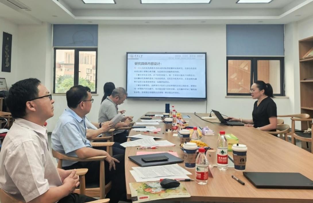 语言认知及语言应用研究基地专职研究员李孝英教授对项目“中医药典籍智能翻译与多模态传播研究”进行了开题汇报。她从研究背景、选题依据、研究价值、内容框架、研究方法、研究计划及预期成果等方面作了系统阐述。该项目聚焦中医药经典文本和术语的译介与传播,尝试融合人工智能技术与多模态手段,推动中医药文化的有效传播和国际影响力。