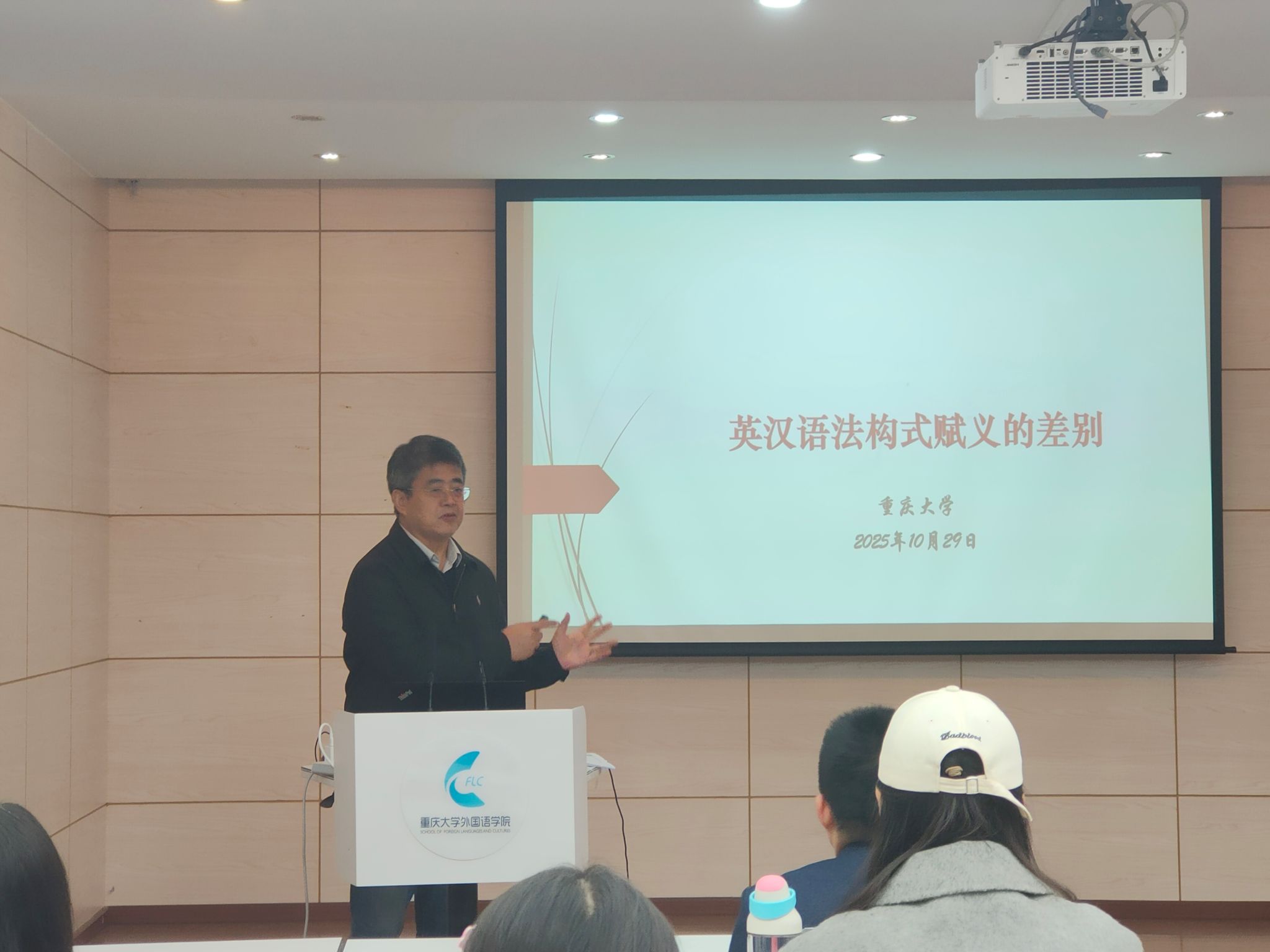 2025年10月29日下午,新加坡国立大学石毓智教授应邀莅临我院,在501会议室作了主题为“英汉语法构式赋义功能的差别”的讲座。讲座由色情影片