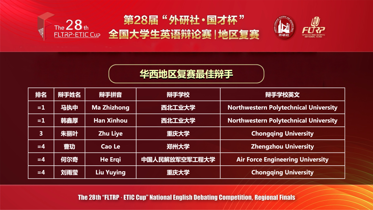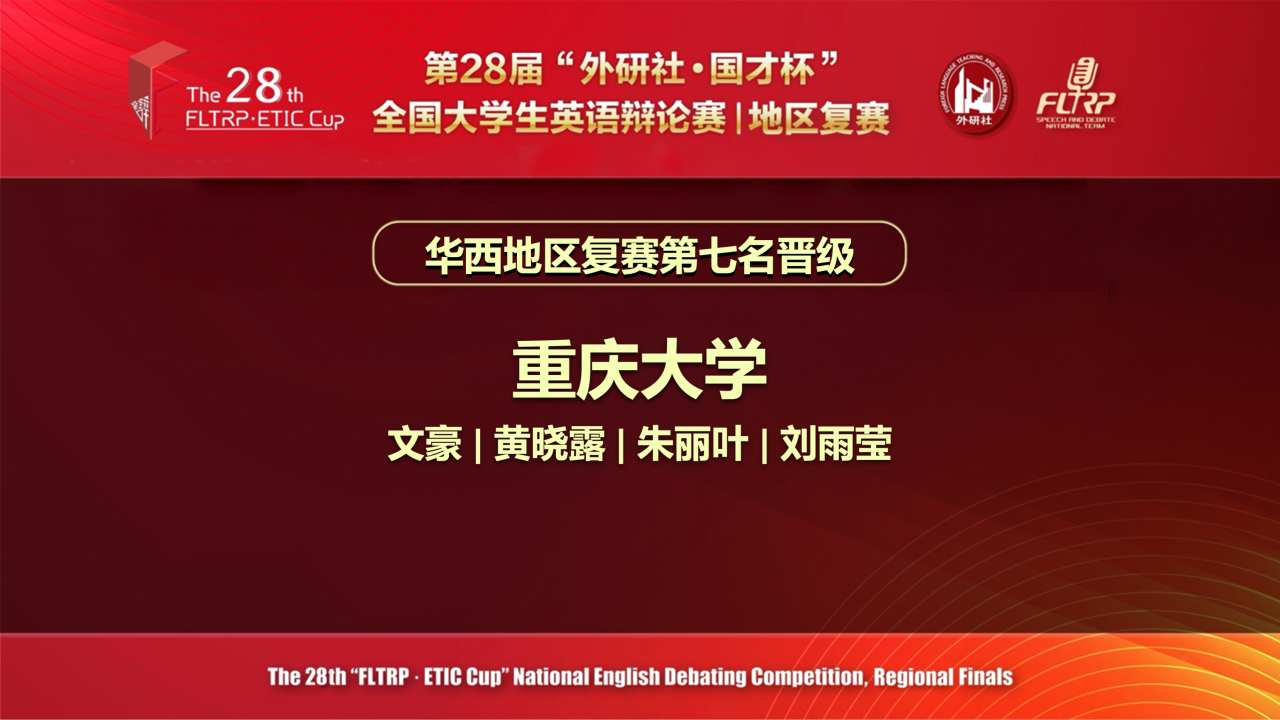 2026年4月18日-19日,第28届“外研社•国才杯”全国大学生英语辩论赛华西赛区复赛在线上举行,色情影片
