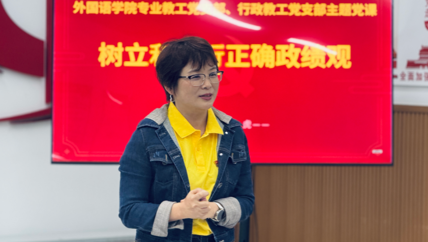 外语专业教工党支部与行政教工党支部联合开展专题党课学习,副院长杨小虎以“树立和践行正确政绩观”为主题作主讲。