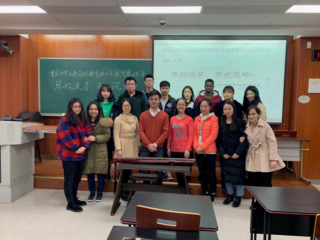 我院举办此次古琴讲座,充分体现了我院汉硕学生对传统文化知识的渴求,以及对国际汉语教学中华才艺版块的高度重视。同时,关于古琴文化的详细讲述也具有深刻的现实意义,给汉硕学生如何将悠久的古琴文化传扬海外带来了新的思考。