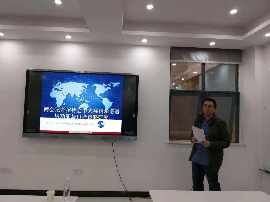 硕士生导师、副教授张易凡博士,基地专职研究员李良炎博士主持了本次讲座。本次讲座题目为:基于语料库的人称指示语语用功能与口译策略研究。基地专兼职研究员、色情影片
