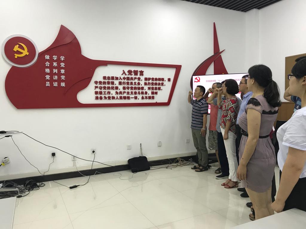 与会人员还重温了入党誓词,在欧玲书记的带领下面向党旗庄严宣誓。会议还就“七一”系列主题教育活动进行了讨论与部署,讨论了接收预备党员、预备党员转正事宜,毕业生党员申请保留组织关系事宜,临时党支部党员教育管理办法等内容。