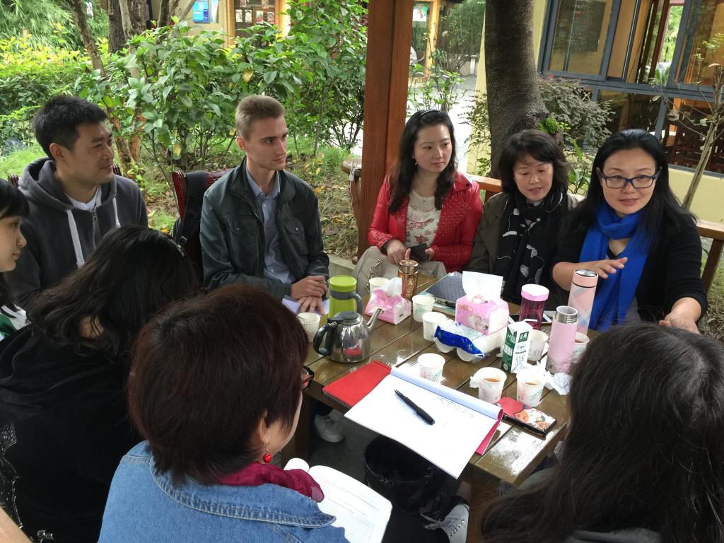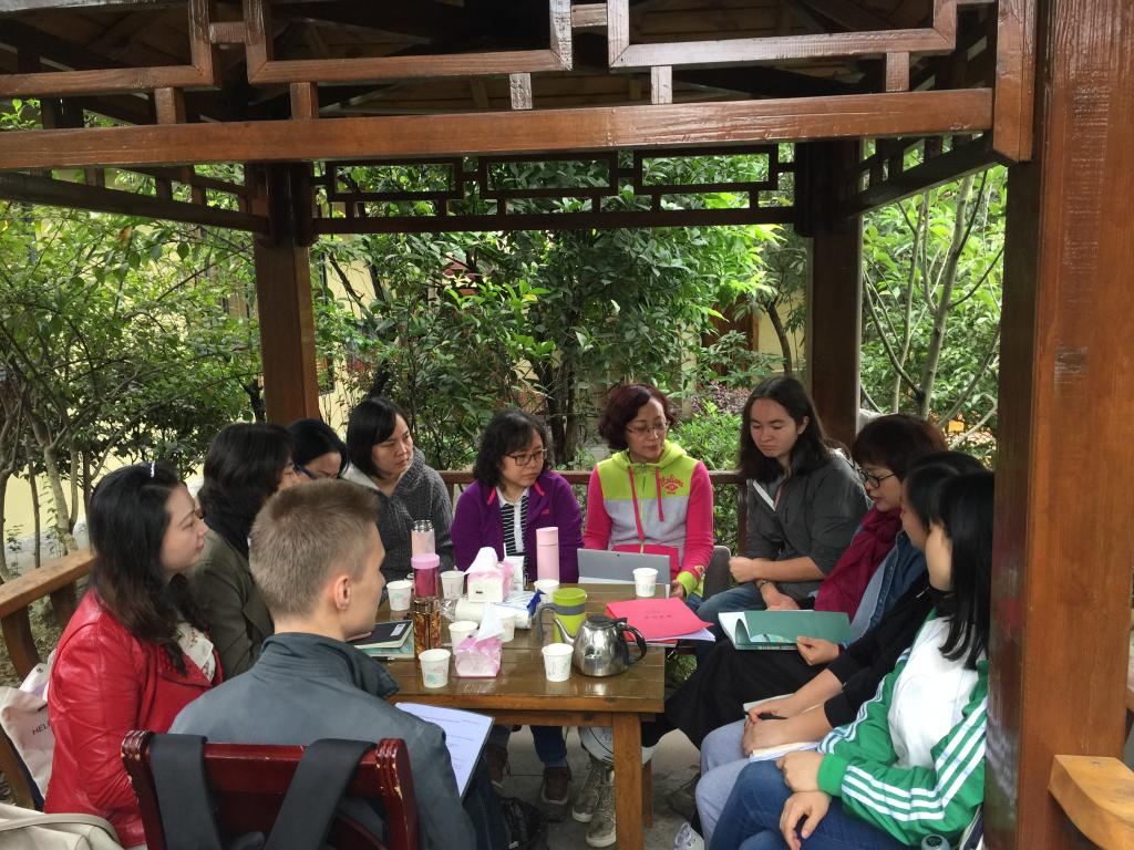 大学英语创新课程组于2017年10月15日上午在大学城农安休闲山庄举行了教研活动。教研会首先欢迎了新外教——Emily的加入,紧接着就11月24日全国100名左右教师观摩PBL课堂,老师们分享了自己在12周的教学计划。李小辉副院长第一个交流了她的教学计划:在12周,她的课堂主题为Decision Making (决策与判断)。她设想组织一场题目为:Are college students ready to make decisions(大学生有能力做决定吗)的辩论,其目的是希望同学们能应用所学内容并思考自己在真实的生活与学习中做出的决策。当这个想法提出以后,大家纷纷表示这个单元项目很有意义,同时提出自己的建议,如:题目过大,Decision making涉及到很多方面,需要缩小范围或为学生提供背景信息;题目为问答题而非辩论题目等。大家各抒己见,帮助李小辉老师完善了教学计划。就这样,每一位老师轮流分享了自己的教学安排并倾听了同侪们宝贵的建议。这次教研会为大家提供了相互切磋教学的宝贵的机会。