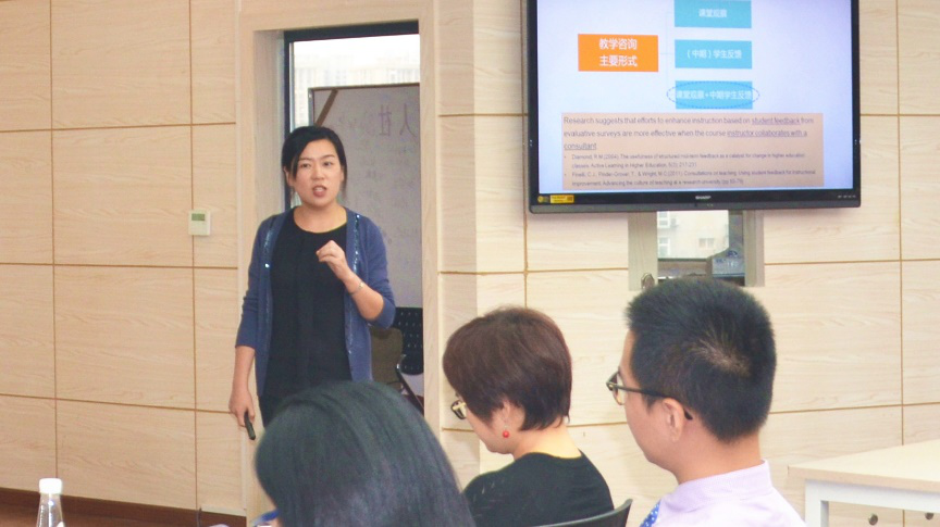 陈圆博士首先介绍目前教学咨询的主要采取课堂观察和学生反馈的形式,并详细介绍了我校 “中期学生反馈”咨询服务的开展情况。教师发展中心在开展实施课堂观察和学生反馈咨询服务的同时也对这项咨询服务进行了评估和反馈。数据显示,课堂观察和学生反馈可以鼓励教师清楚表达教学目标,促进教师对课堂教学反思,协助教师发现和解决教学问题……,是比较有效的教学咨询手段。随后,陈圆博士详细介绍了课堂观察和学生反馈实施的主要流程,并重点讲述了数据收集的实施过程,包括课堂观察记录的指标, 收集学生反馈以及形成反馈报告的注意事项。陈圆博士还组织了“课堂观察”指标重要成都问卷调查,与参会教师深入讨论了课堂观察指标的重要性,以期形成更加科学客观的“课堂观察”指标。