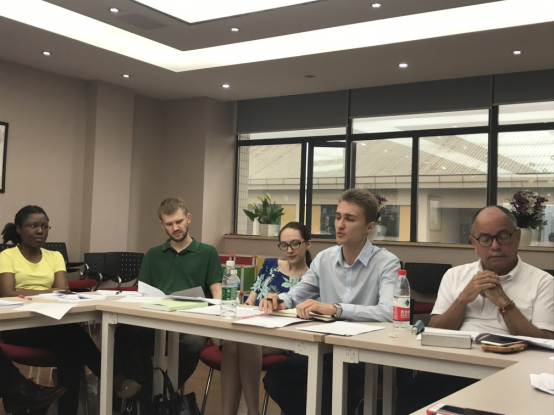 学院外事工作院长助理王旭老师也向外教们总结了2016-2017学年的教学情况和面向全校学生开展的第二课堂情况。每一位外教都对自己的OFFICE HOUR进行了反馈,也指出了一些需要改善的问题,例如时间段的分布区间,以便使学生最大化受益,都能预约到理想的时间段。从而使学生们从来自不同国家的外教们的文化背景中受益,学习到跨文化交际的经验。