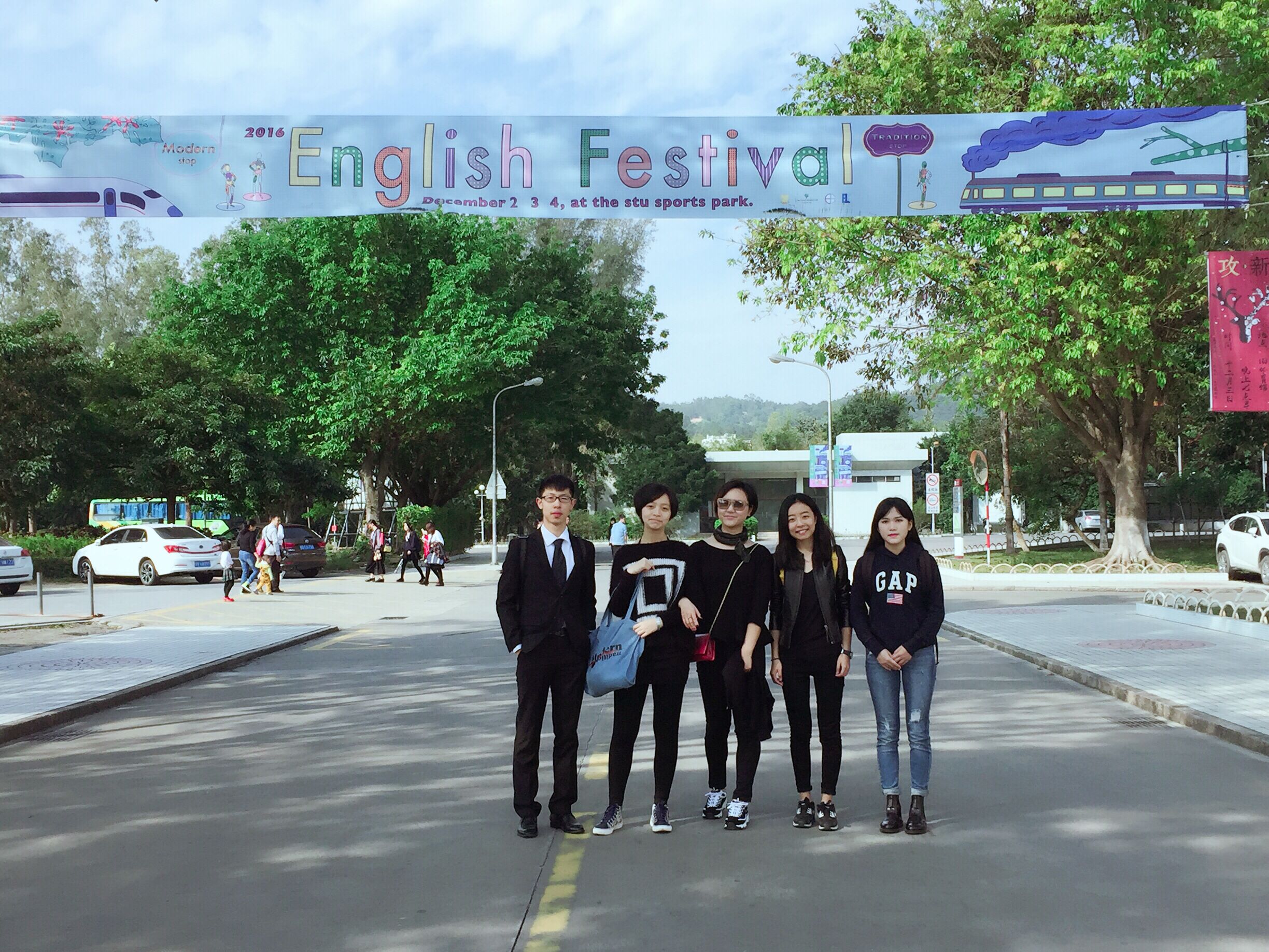 教师李舟带领英语专业2014级学生崔璨、英语专业2015级学生潘璐、德语专业2014级学生罗冰雁、计算机学院2014级学生宋承儒一行,应汕头大学的邀请,参加以 “Tradition in the Modern World” 为主题的第十四届校际英语节。