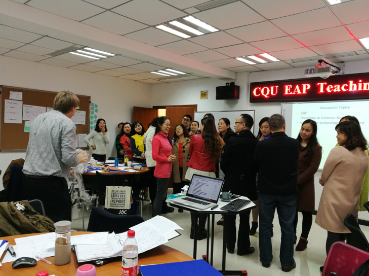 第一天培训的主要内容包括EAP培训项目介绍、EAP的基本特点、EAP口语技能、EAP听说综合技能等。Peter Saunders的培训以学员为中心,强调体验式和互动式教学方式,每位学员积极参与每项课堂活动,课堂氛围十分活跃。在第一天培训结束时,学员们反馈到培训内容的针对性和可操作性强,收获颇丰,对接下来培训课程充满了期待!