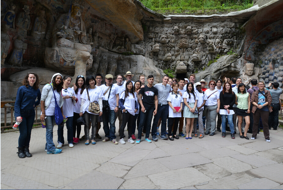 午餐后,外籍教师参观了世界文化遗产 -- 大足石刻。导游用流利的英文向外教们讲解了石壁上的一尊尊石刻所承载的历史及文化内涵。大足石刻犹如一本经800年镌刻而成的书本,无声地向大家展示着中国传统佛教的因果轮回,道教的无为而治,以及儒家尊师重教的传统美德。外教们无不被中国古人巧夺天工的雕刻艺术及智慧所折服。