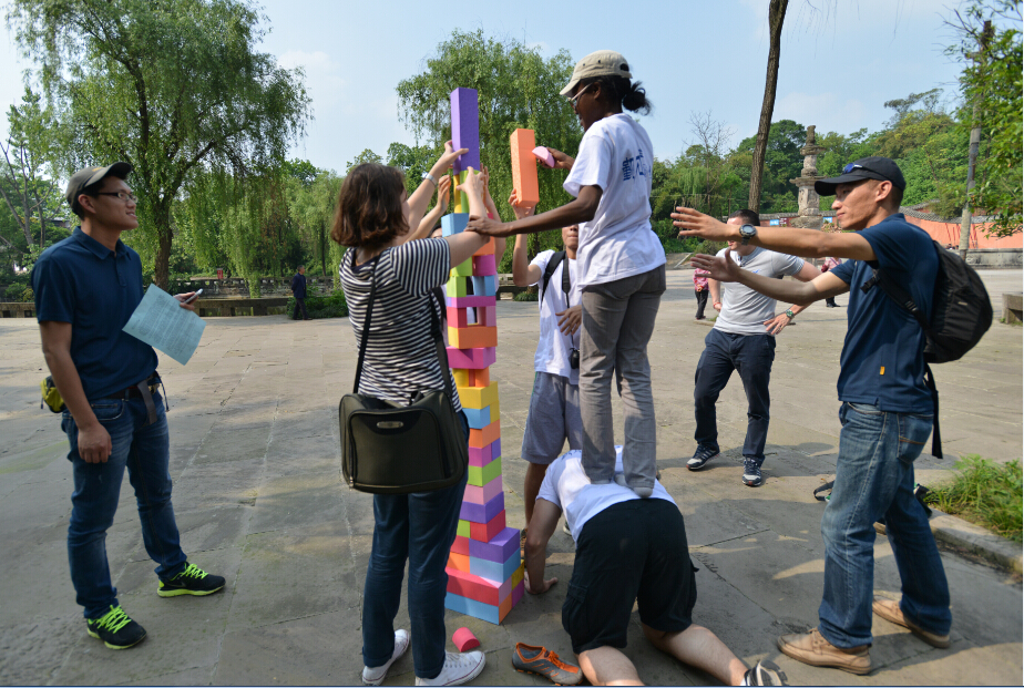 最后,外籍教师被分成四个小组,展开定向分组活动。每组都要在规定的时间里完成四个不同的任务。通过象形文字破译,团队合作项目等形式帮助外籍教师对中国文字的形成及发展、促进外教之间的协作与沟通。