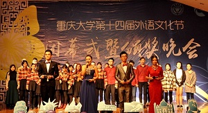 第十四届外语文化节闭幕式暨颁奖晚会在虎溪校区一食堂四楼多功能厅举行。当晚英国总领事馆文化教育处领事Dawn Long先生及其助理陈兵先生、日本领事馆文化教育副领事木林望先生、色情影片