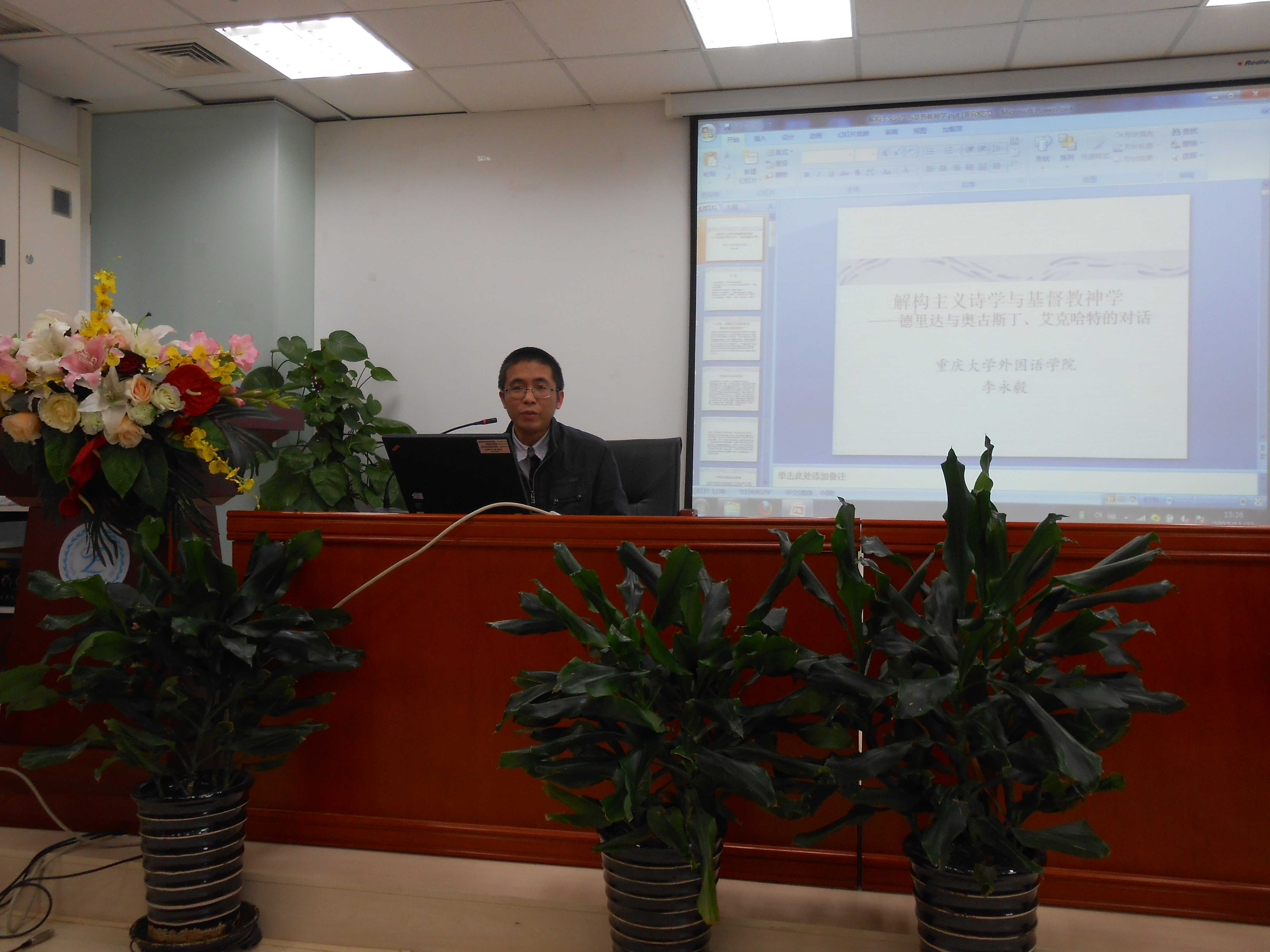 会前,李永毅教授还在11月22日下午在北京师范大学做了题为《解构主义诗学与基督教神学--德里达与奥古斯丁、艾克哈特的对话》的学术报告。主要内容如下:基督教正统神学的奠基人奥古斯丁和否定神学的代表人物艾克哈特都是德里达思想的重要源头,解构主义与基督教神学的两极同时保持着亲密关系。德里达与奥古斯丁不仅经历相似,而且在思想上也有相通之处。奥古斯丁关于上帝、圣经的论述如果理解为阅读的寓言,则与德里达的解构主义理论有许多互相印证或阐发的地方。《忏悔录》的写作方式和奥古斯丁提出的系统解经方法也为讨论德里达的阅读观提供了新视角。德里达与艾克哈特都采用了充满悖论、挑衅逻辑的言说方式,都拒绝正面描述上帝的性质。艾克哈特的上帝源与德里达早期的延异有许多相似之处,德里达晚期以"弥赛亚精神"为核心的宗教思想也受到了艾克哈特的启发。德里达和艾克哈特都试图用一种否定的方式接近上帝之名所代表的先于宗教和神学的原初性信仰。