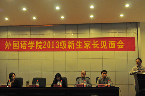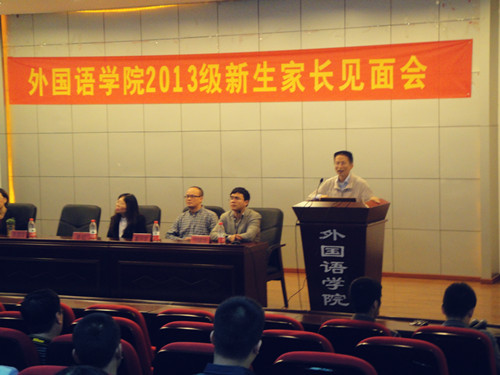 、学院发展规划以及外文学科的学习。他提出,外文学科学习的是语言经验、人生经验、文化经验等许多方面,而我院课程体系的思路也将由学习语言到语言学习逐步延伸。