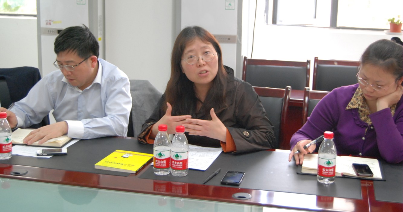 主管教学的欧玲副院长从大学英语课程体系的建设、课程规范的制定、师资队伍的提升、外籍教师的聘任、学校外语氛围的营造等方面详细介绍了目前大学英语教学的状况和改革进度。