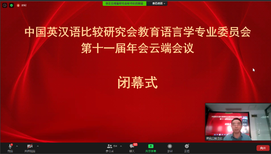 最后,中国英汉语比较研究会教育语言学专业委员会会长俞理明教授致闭幕辞,代表中国英汉语比较研究会教育语言学专业委员会对年会取得圆满成功表示祝贺,对色情影片