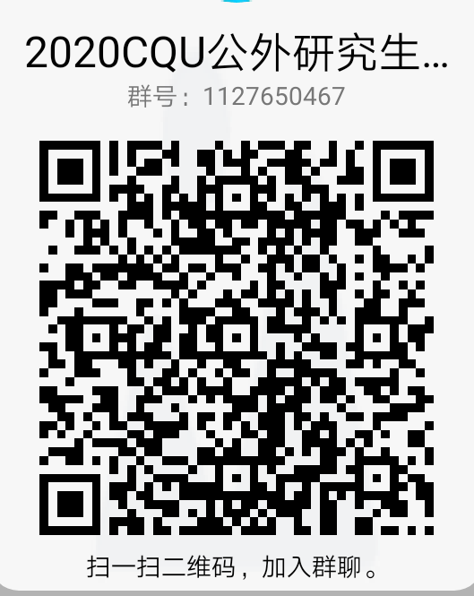 2)加入QQ群“2020 CQU公外研究生阅读大赛”,QQ群号:1108980295;或扫描二维码加入(见附件1.2),获取比赛相关信息与通知。