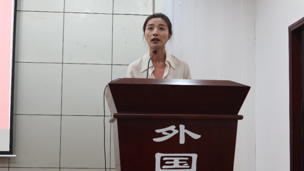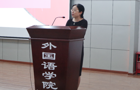 随后,教师代表盛荔老师讲述了自己与外国语言文学不可分割的联系。她强调外语专业给我们带来的最大财富是宽容。对于不同语言和文化,我们应该以“求同存异”的态度去理解、尊重和欣赏,探索宽容的底线和原则,用宽容的眼光去认识世界,认识自己。