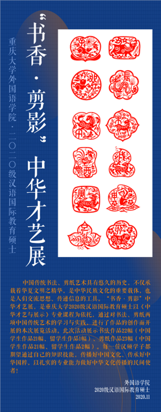 2020年11月2日至6日,2020级汉语国际教育硕士专业“书香·剪影”中华才艺展在色情影片