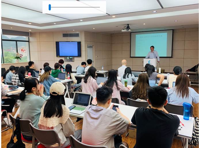 在501举办了翻译硕士职业素养提升计划系列工作坊;外语学院翻译硕士专业学位人才培养校外专家、重庆市教育国际交流协会秘书长、原四川外国语大学副校长乐勇到学院以“互联网+译员素养提升路径”为主题与近40名翻译硕士进行了长达两个小时的交流,外语学院党委书记欧玲、翻译硕士点教师游振声等也参加了此次交流活动。