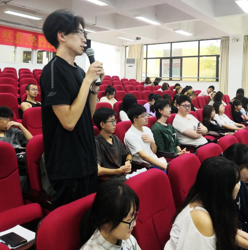 在讲座的最后阶段,韩教授与现场听众进行了亲切的互动交流,多位同学就中日两国与西方文化主体性的差别、中国文化的包容性与日本文化学习性的异同等问题向韩立红教授请教,韩教授均一一给以耐心细致的解答。讲座最终,大家以热烈长久的掌声向韩教授表达了诚挚的敬意。