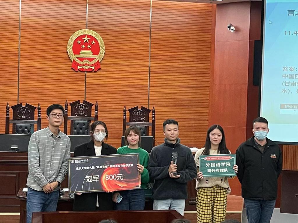 第九届“研知有理”综合知识竞赛决赛在重大B区第二综合教学楼314成功举行。我院代表队——研外有理队由一名智囊团成员和五名参赛队员组成。智囊团成员为罗啸天,五名参赛队员分别是权杰、刘畅润、邱雨涵、张一诺和王少聪。经过激烈角逐,我院代表队从8支学院代表队中脱颖而出,摘得冠军头衔。