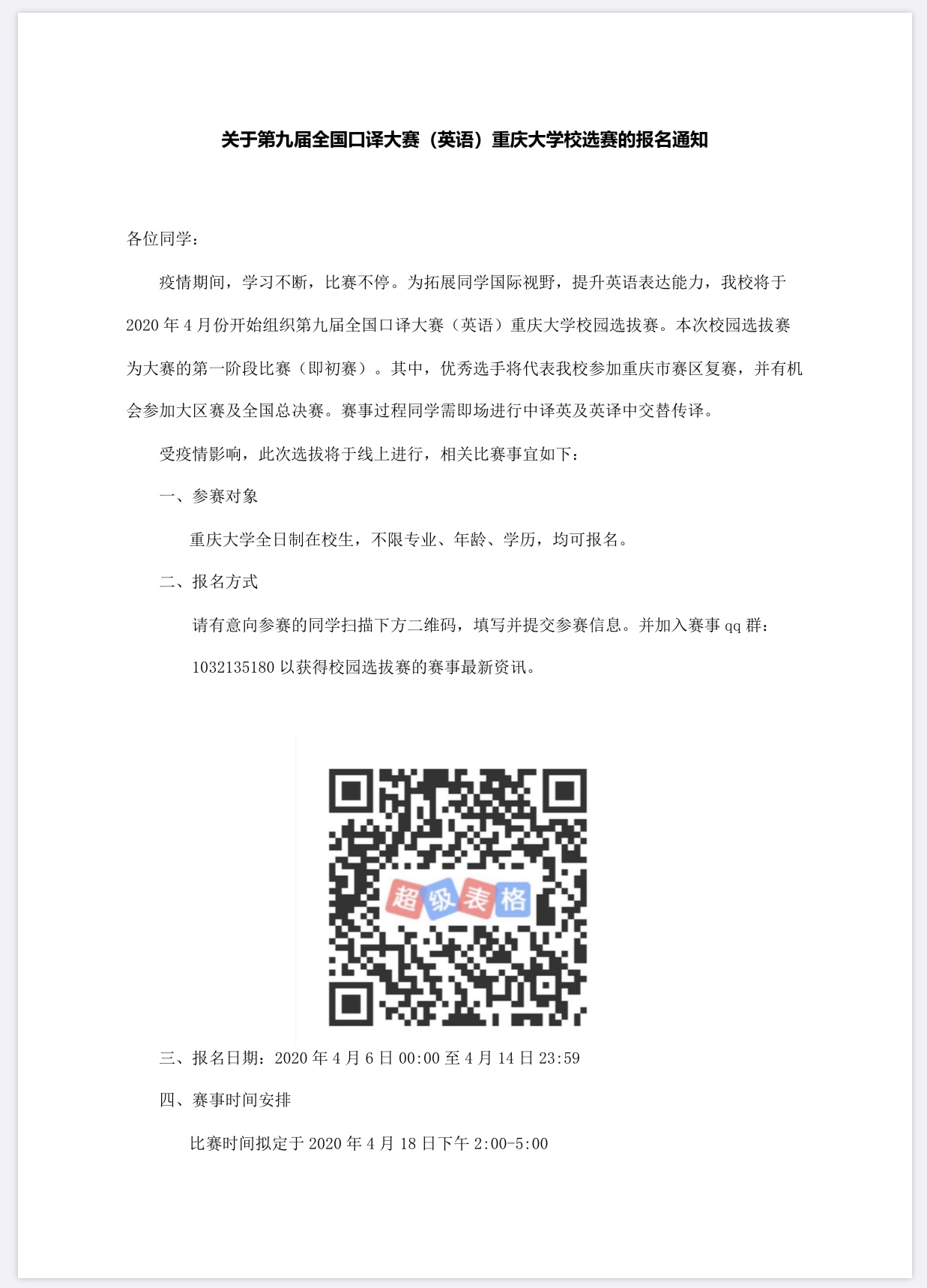 关于第九届全国口译大赛(英语)色情影片 校选赛的报名通知