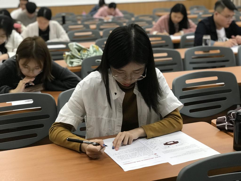 虎溪校区第一教学楼D1150、D1151、D1231分组别同时进行,赛制上面向英语专业全体学生,并允许一人参加多赛。经统计,本次英语专业累计报名人数共计219人次,其中写作比赛125人,本科生92人,研究生33人;阅读比赛94人,本科生56人,研究生38人。