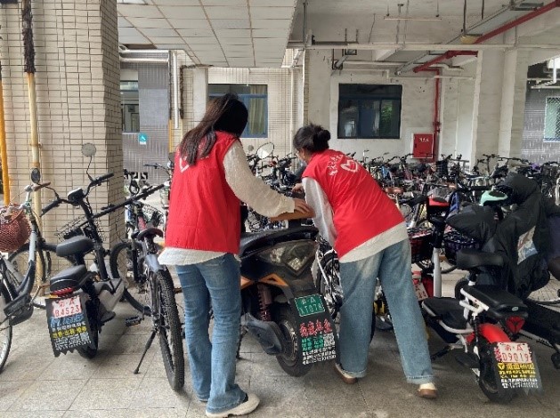 汉硕支部的12名入党积极分子开展了文明摆放校园车辆的志愿活动。同学们分为三组,主要在兰园宿舍区和三食堂附近引导同学规范、有序停车,提醒同学们一些停车注意事项,并把乱停乱放的车辆摆放整齐。看着整齐排放的车辆,大家都感叹美好的校园环境要靠我们一起来创造和守护。