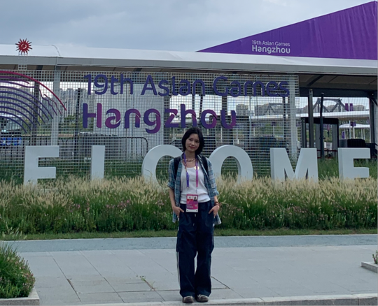 2023级英语笔译专业研究生任莲洁同学以新华社中国新华新闻电视网记者的身份,参与杭州亚运会新闻信息服务(AGNS)工作,在亚运舞台上展现了重大人的风采。