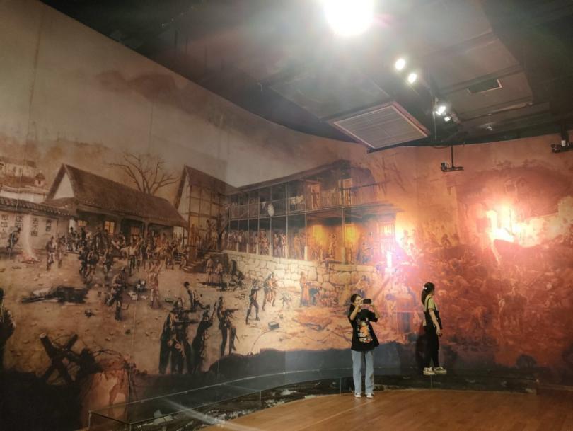 实践团成员在“11·27大屠杀半景画馆中学习