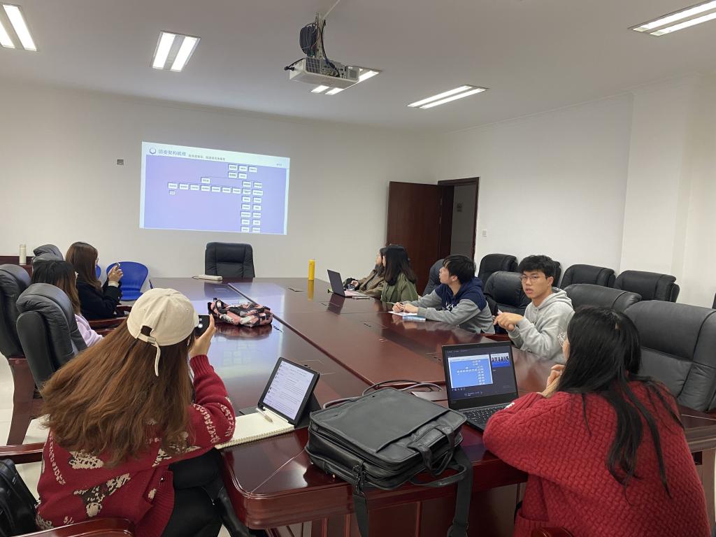 院团委书记汪俣婧老师首先为各个负责人进行了院内构架梳理,分别详细介绍了学院相关领导的分管工作,各职能办公室所负责的工作。