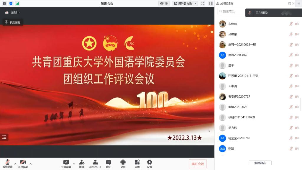 团委团组织工作评议会议。由于近期疫情防控形势严峻,为保障我院师生的身体健康安全,本次会议以腾讯会议的方式于线上开展。