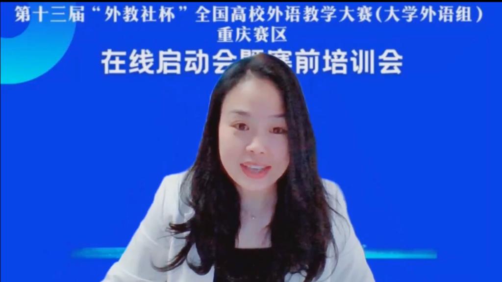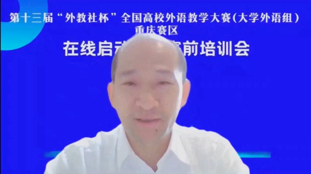 2022年5月28日,第十三届“外教社杯”全国高校外语教学大赛(大学外语组)重庆赛区在线启动会暨赛前培训会成功举办。本届教学大赛由重庆市教育委员会主办,重庆市普通本科高等学校公共基础课程教学指导委员会、重庆邮电大学、上海外语教育出版承办,重庆市高等教育学会大学外语教学研究专业委员会、重庆市外文学会协办。本次会议通过腾讯会议形式在线举办,面向重庆市各高校全体大学外语老师,通过专家讲座以及往届获奖选手经验分享等环节,帮助参赛教师做好赛前准备工作,解读大赛章程,深入理解比赛文件和比赛流程,实现以赛促教、赛教融合的主旨。