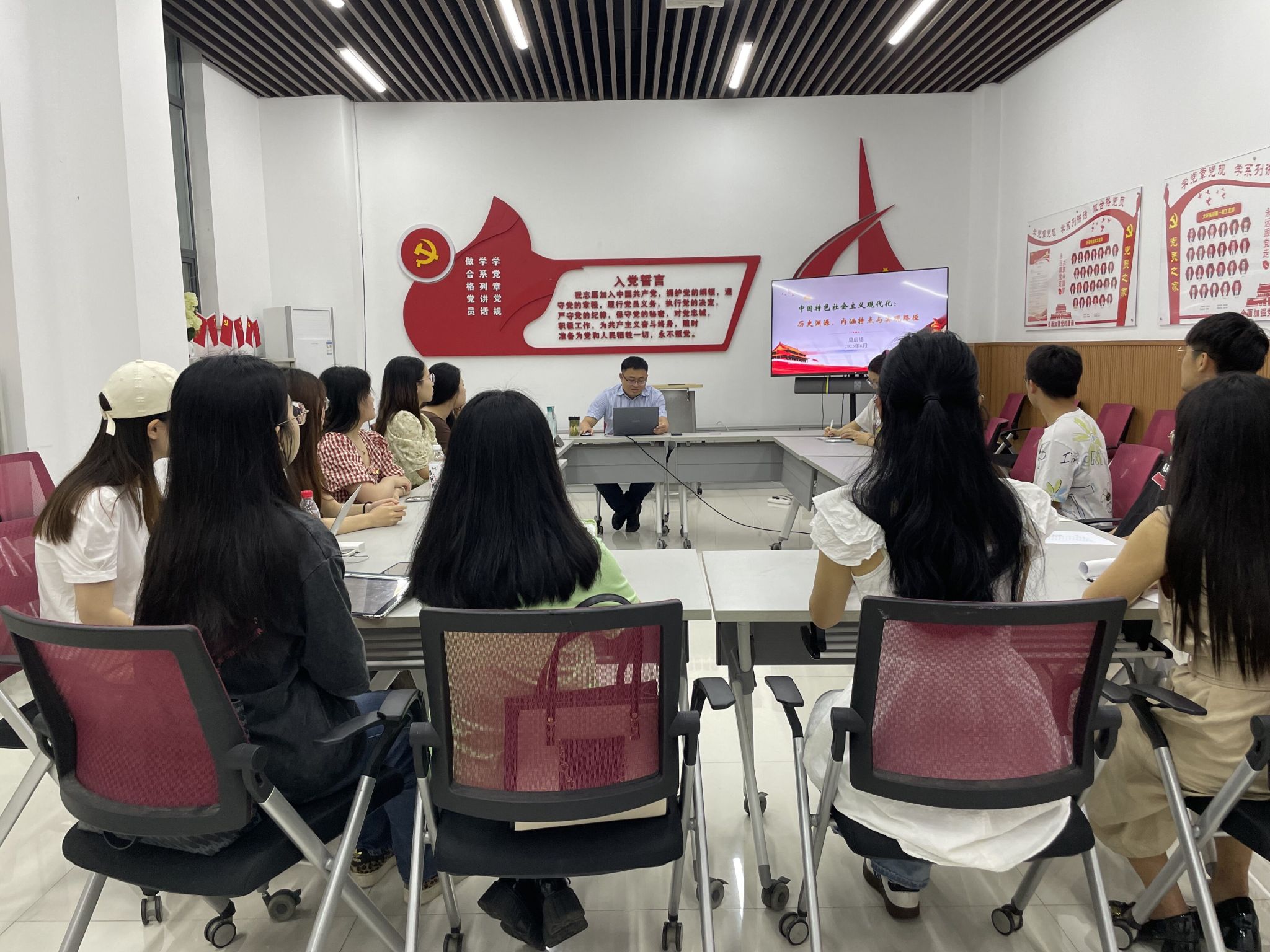 莫启扬院长为学术研究生第一党支部讲授了题为 “中国特色社会主义现代化:历史渊源、内涵特点与实现路径”的主题党课。会议由党委组织员刘培老师主持,学术研究生第一党支部全体党员参加了本次党课学习。