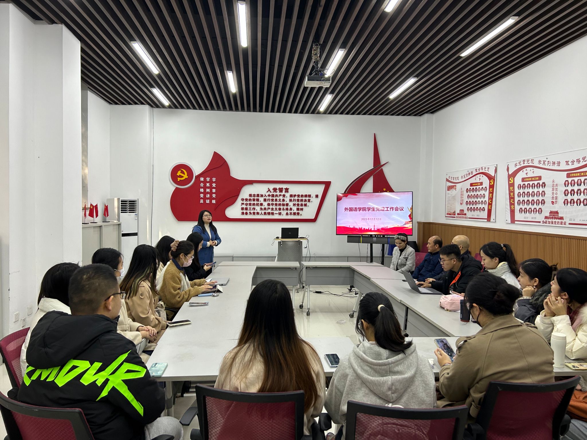 党委在学院楼105党员活动室召开了本年度第五次学生党建工作会议。会议由学院党委委员、组织员刘培老师主持,国教支部书记李良炎老师、翻硕支部书记游振声老师、本科生支部书记张茹老师、本科生支部周璐老师,各学生支部书记、支委委员参加了会议。