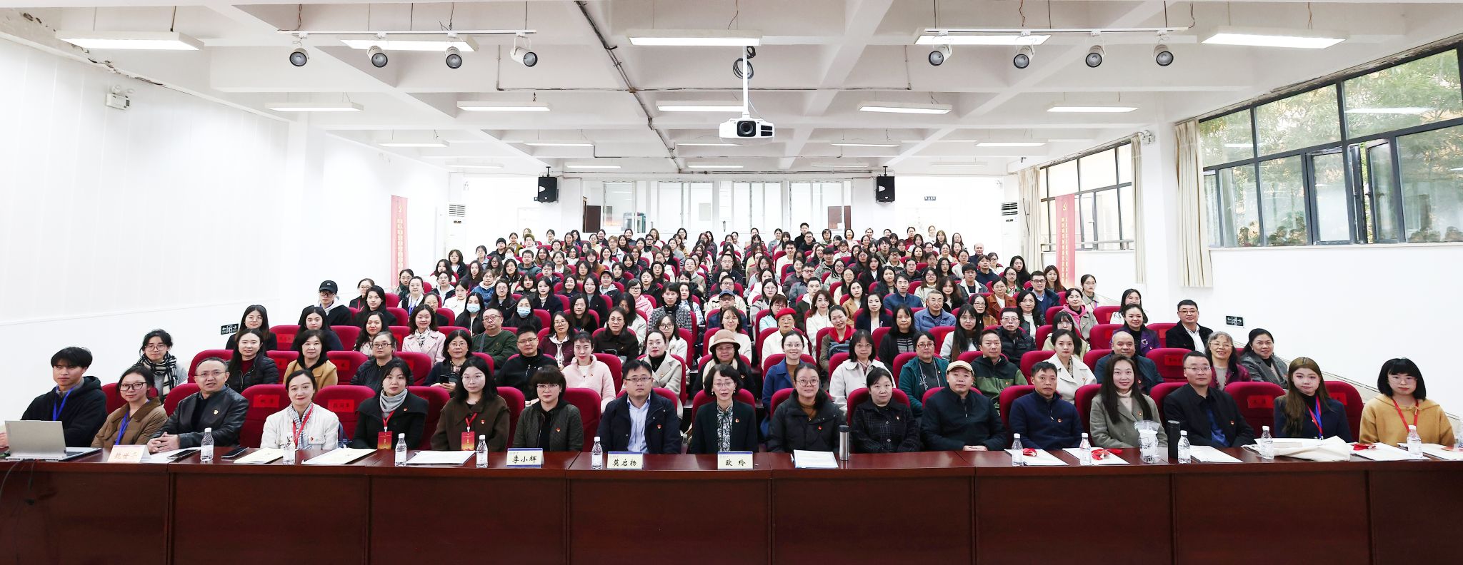 党委书记欧玲,院长莫启扬,副院长李小辉、杨小虎,及学院全体师生党员参加了本次大会。
