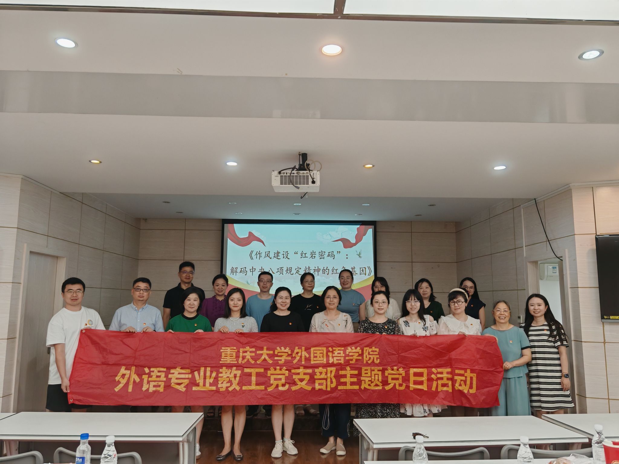 邓琪在党课以《作风建设“红岩密码”:解码中央八项规定精神的红色基因》为题,从五方面剖析了中央八项规定精神的历史渊源与时代价值。党课以“红岩记忆”开篇,借小故事回顾红岩精神内涵,强调了作风建设的重要意义;通过“狱中八条与八项规定”阐释了党的纪建设在不同历史时期的传承与发展;结合高校工作实际,指出师德师风建设是落实中央八项规定精神的重要抓手;在“红岩精神的当代解码”和“互动工坊”部分,以理论与实践相结合的方式,设置问题讨论与问卷回答环节,引导教师党员深刻领会作风建设的精神实质。随后,教师代表向璐领学《坚持从抓作风入手推进全面从严治党 把新时代党的自我革命要求进一步落实到位》文件,帮助大家进一步加深认识。