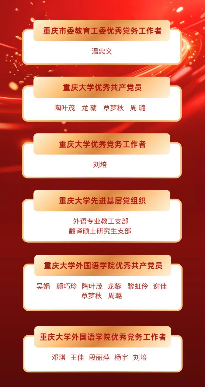 多位党员教师受到学院、学校和重庆市的表彰,党员教师争先创优、示范领航成效喜人。