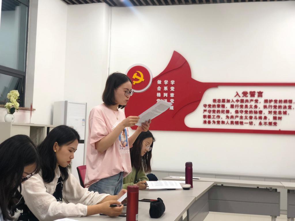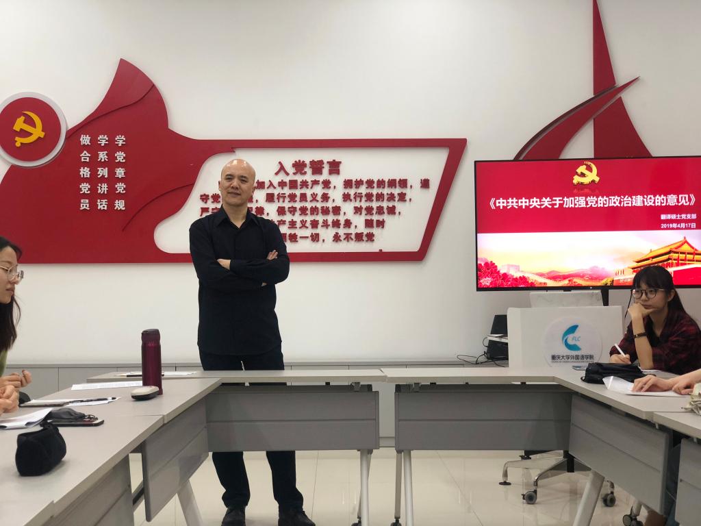 翻译硕士党支部在学院楼105会议室开展了《中共中央关于加强党的政治建设的意见》学习活动。翻硕支部全体党员、积极分子参与了此次活动,活动由党支部副书记许祺苑同志主持召开。