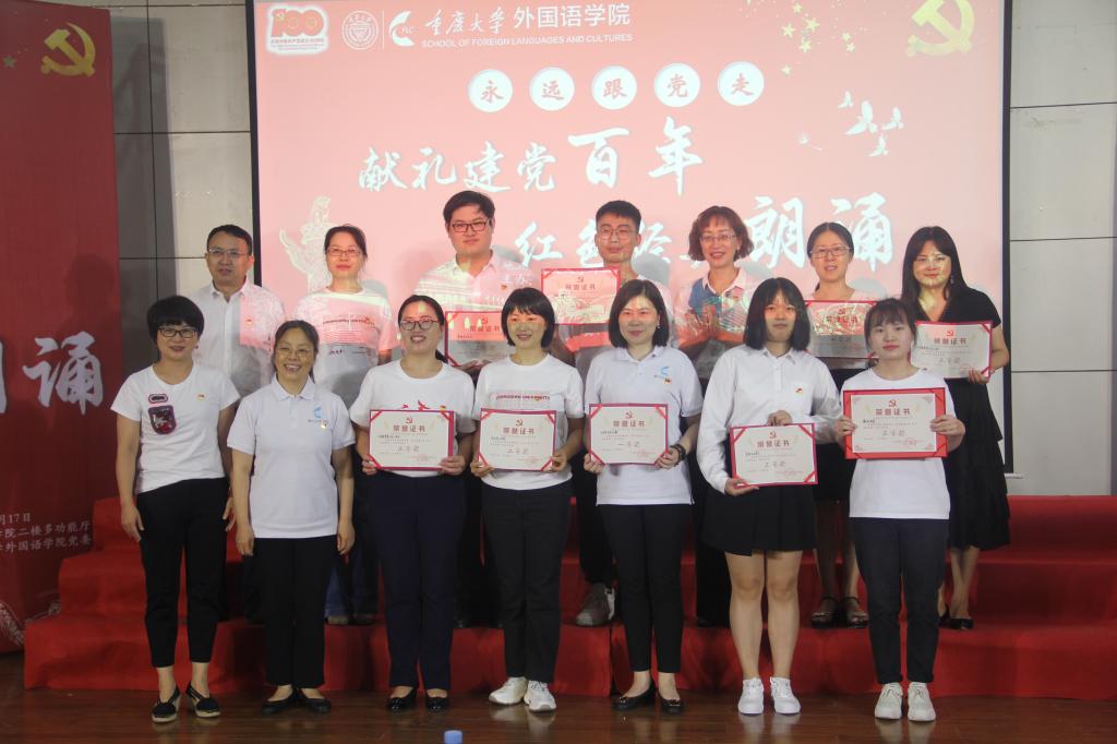 本次经典朗读活动还进行了打分和评比,共设置一等奖1个、二等奖3个、三等奖5个。外语专业教工支部凭借精彩的表演最终荣获一等奖。