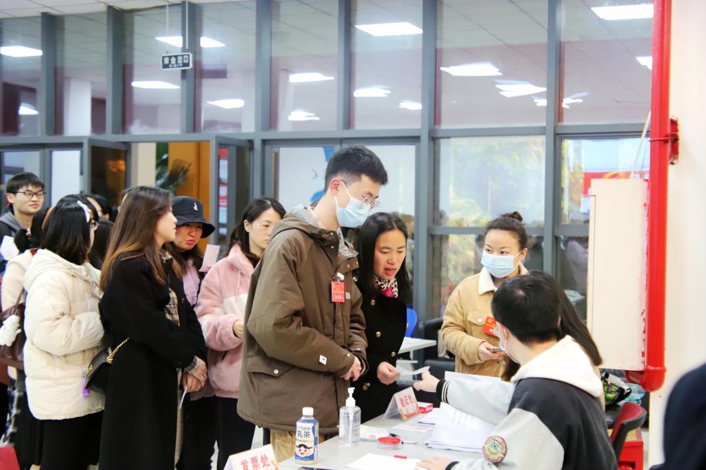 投票站设在学院楼一楼大厅,现场悬挂着“积极行使民主权利,投下神圣而庄严的一票!”的标语,显示屏上滚动播放着“珍惜民主权利,踊跃参加区人大换届选举”等标语,气氛庄重热烈。