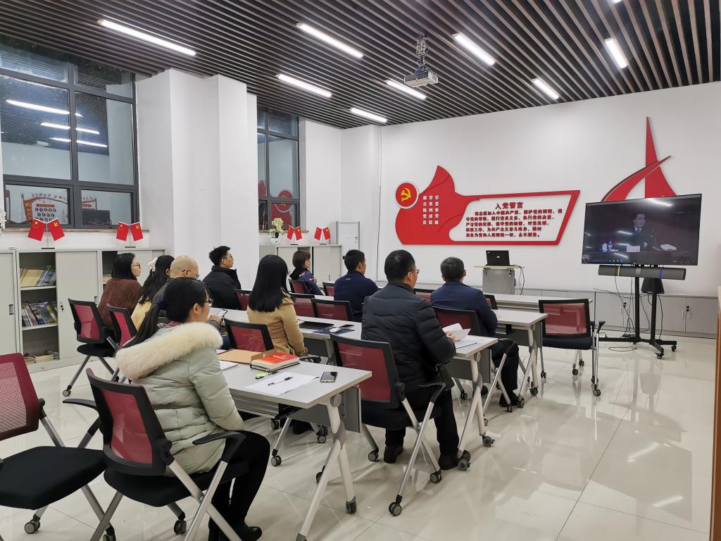 党委书记欧玲、院长彭静在主会场参加了讲座,其他院领导、党支部书记在学院105党员活动室集中收看了会议直播。